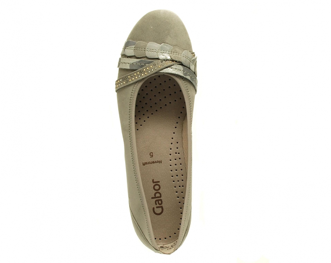 Nubuk Ballerina mit Hovercraft Gummisohle, dadurch besonders weich und flexibel. Obermaterial Rauhleder, gepolsterte Lederdecksohle, attraktive Riemchengarnitur, 20 mm Absatzhöhe